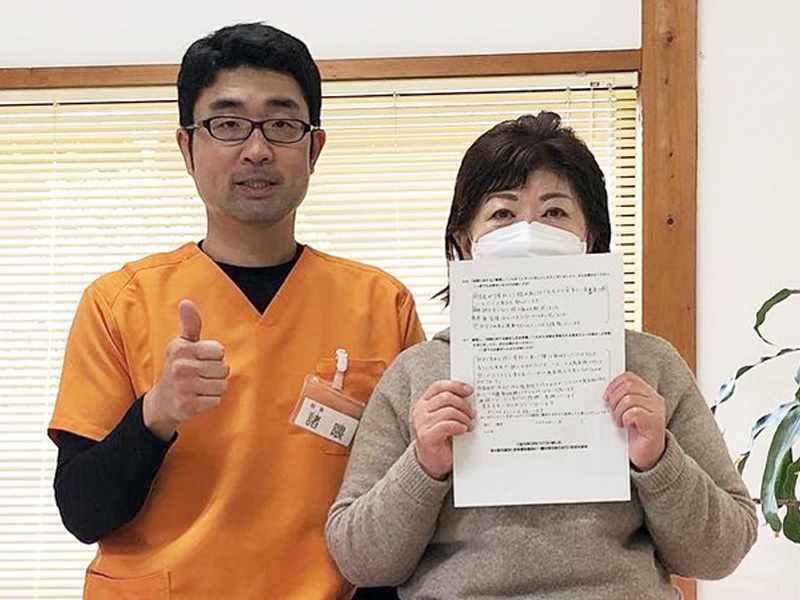 膝もだいぶ良くなり感謝、感謝です。先生本当にありがとうございます。これからもよろしくお願いいたします。(N様)